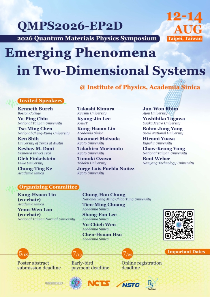 【研討會邀請】2026 量子材料物理研討會//2026 Quantum Materials Physics Symposium: Emerging Phenomena in Two-Dimensional Systems
