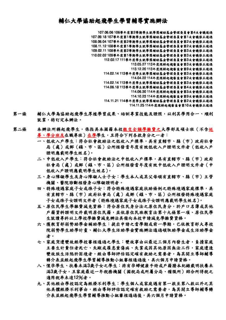 1.114年實施辦法_輔仁大學協助起飛學生學習輔導1141121