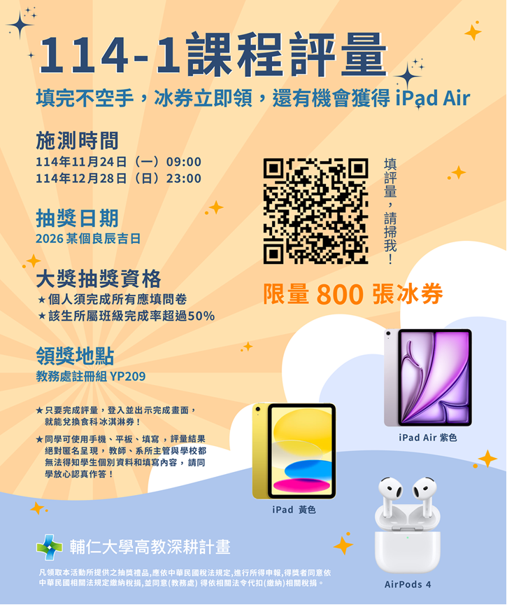 114學年度第1學期課程評量施測時程即將開始!